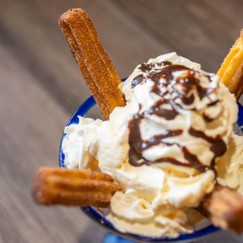 We stuff a flour tortilla with your choice of shredded beef or chicken, then deep-fried to a golden brown. Topped with cheese sauce, lettuce, sour cream, pico de gallo, and guacamole. Served with rice and beans.