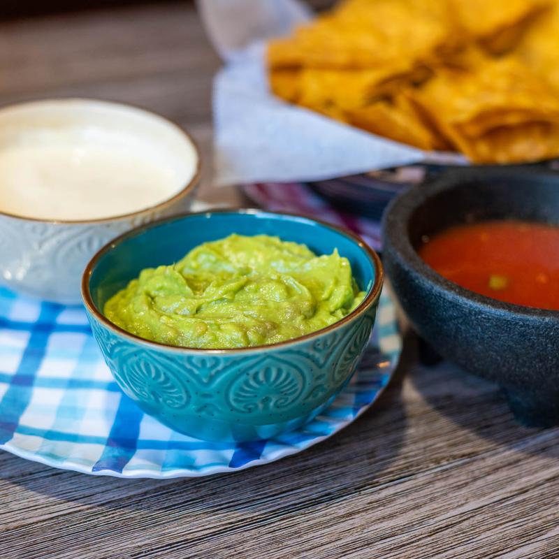 Crispy tortilla filled with seasoned ground beef or tender chicken, cheese, lettuce, tomato, sour cream, and guacamole.