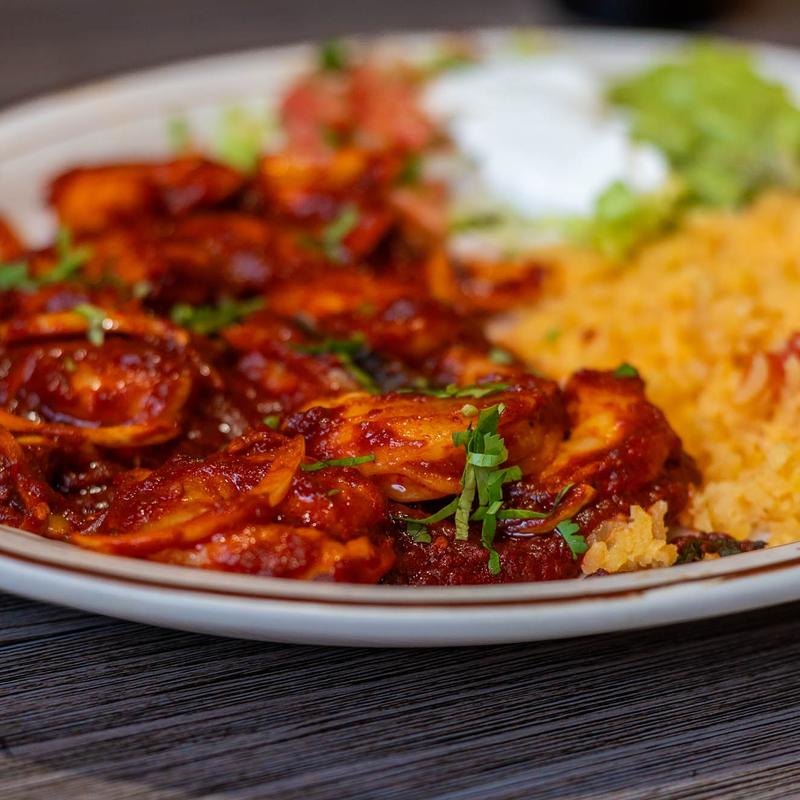 We use our special recipe to cook tender strips of marinated chicken breast or beef steak along with sautéed onions, bell peppers, and tomatoes. Served with lettuce, guacamole, sour cream, pico de gallo, rice, and beans.